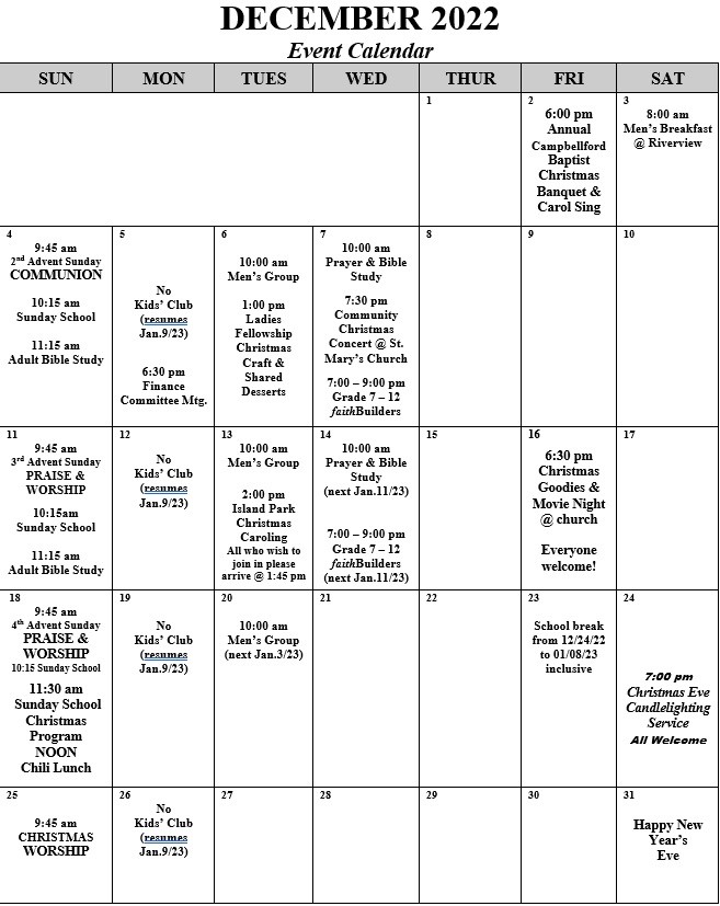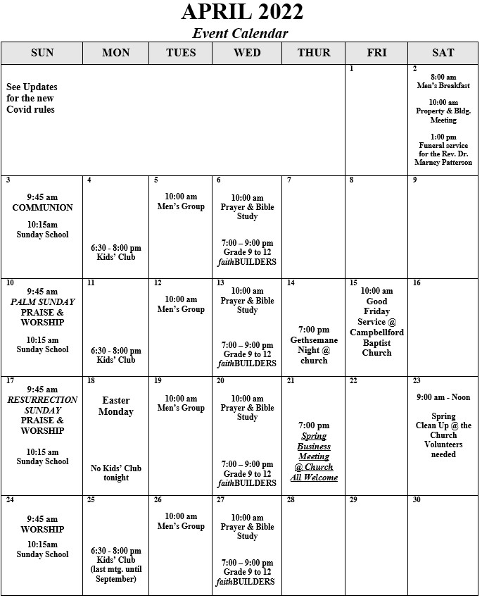 Campbellford Baptist Church - Monthly Event Calendar (Select "Download" to view)